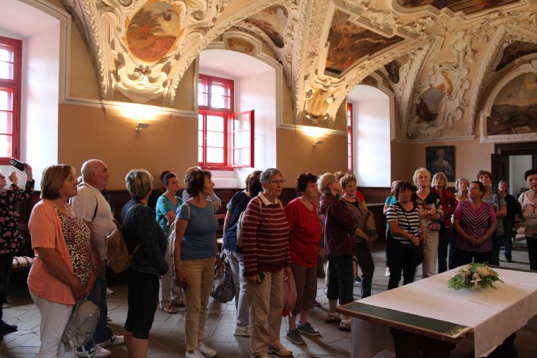 Výborný oběd ve Slavii podpořil dobrou náladu a vydali jsme se do Želivi, kde jsme absolvovali prohlídku premonstrátského kláštera ,na jehož nynější podobě se podílel známý barokní architekt Jan Blažej Santini – Aichel.